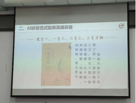 报告分为“高端装备智能化”“AI研发范式助推高端装备”两个方面内容,庞长涛从装备智能化进程入手,阐述了自适应制造、智能制造到高端装备智能化的演进路径通过特斯拉、宝马等企业的机器人具身智能案例,展示了其在智能装配、质量检测、搬运物流、预测性维护等环节的实践效能,明确了智能化高端装备“接入AI大模型、实现人机自由交互、具备自主决策与持续学习能力”的核心特点。此外,以《道德经》“道生一,一生二,二生三,三生万物”的哲学智慧,隐喻科研从单点突破到体系化创新的发展规律,为师生科研思维开拓了全新维度。